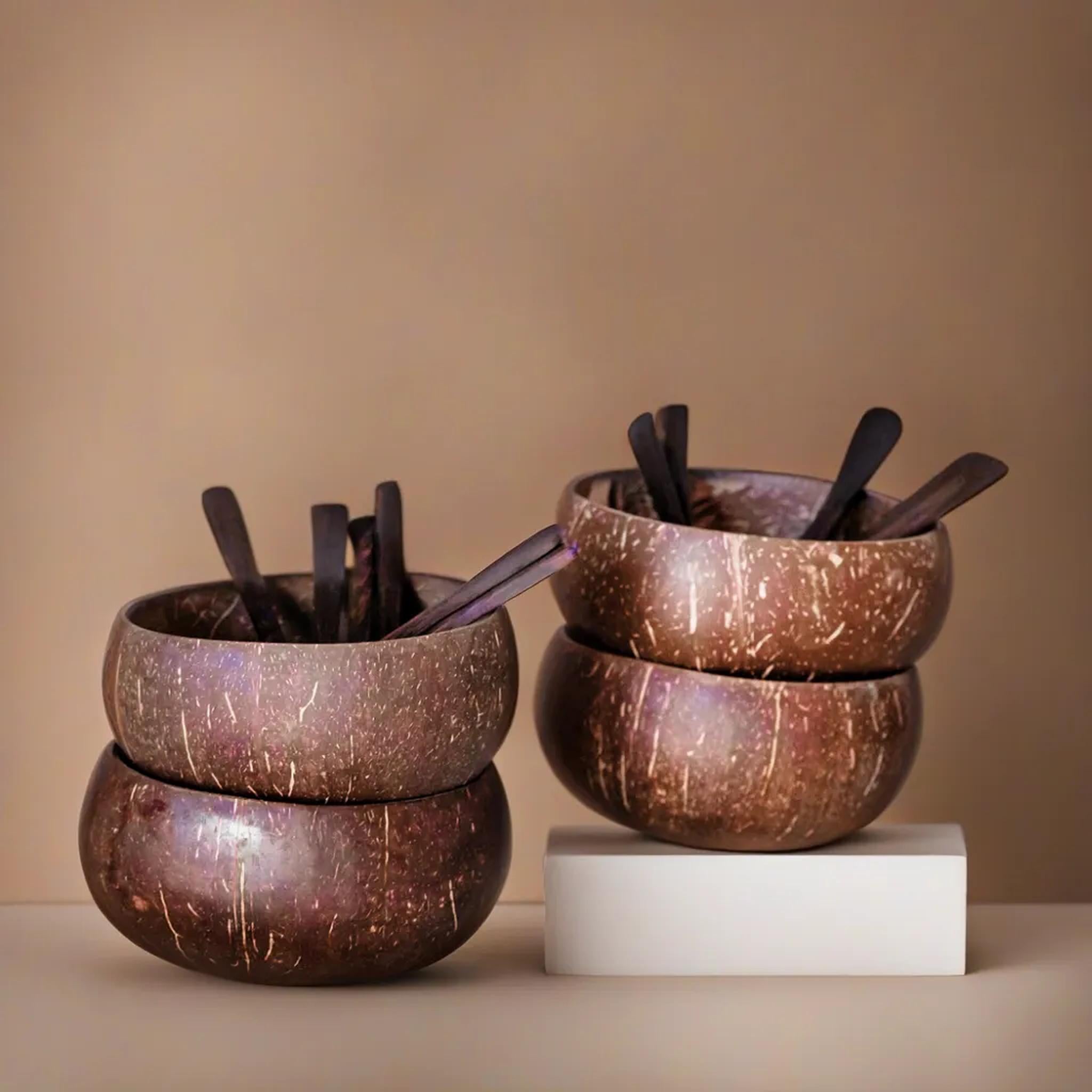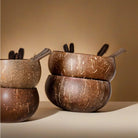- 4 Jumbo Coconut Bowls: Each bowl is handcrafted from real coconut shells, offering ample space for hearty meals, making them perfect for family servings.