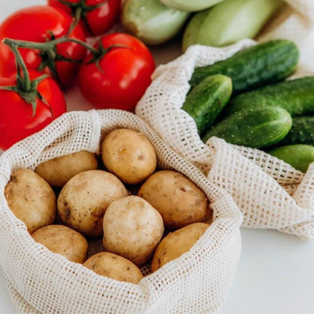 Our Taste Without Waste Market Bag Bundle is the perfect set for all your grocery shopping needs. Each bundle includes a sturdy and spacious Grocery Tote Bag, a durable Market Bag, and six (3 small and 3 large) Organic Cotton Produce Bags.